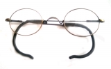 Oválná brýle typu " Lenonky" mosazné barvy s šířkou očnice 40 mm s flexovou stranicí s plastový návleky.